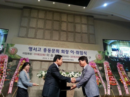 영서고 총동문회장 이.취임식에고교연합회 회장이신~^^ 윤한중동문회장님..그리고 홍현철 사무총장님 참석 하셨습니다..이임회장 31대 이승철취임해장 32대 최병구5월27일 오후7시 아모르컨벤션 웨딩에서 행사 중 입니다..연합회장이신 윤한중 동문회장님께서 이임하시는 이승철 동문회장님께서 감사패 및 행운의 열쇠 전달을 하였습니다.영서고 동문회장 취임을 축하드리고무궁한 발전을 기원 합니다.