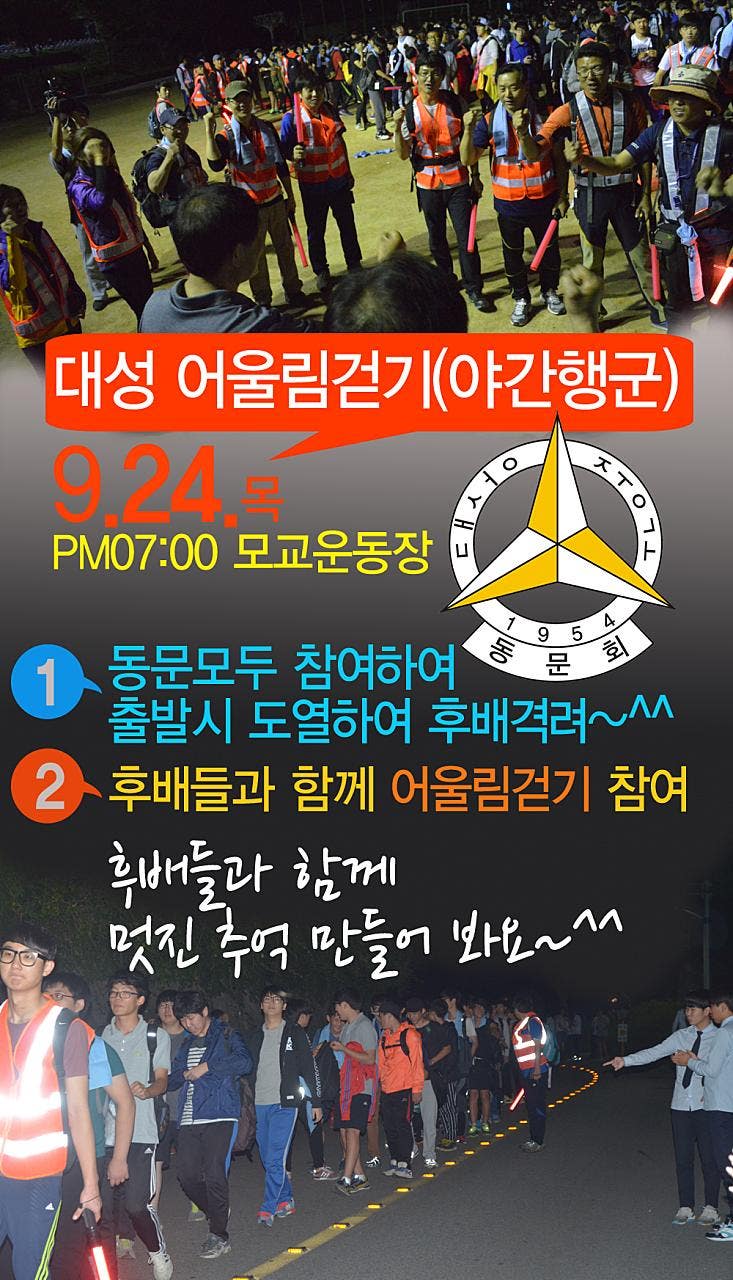어울림 걷기(야간행군)에 전동문 참여바랍니다.