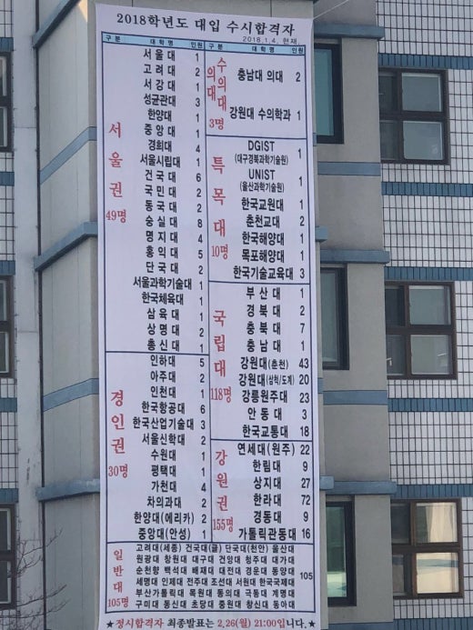 선생님들의 헌신과 노고에 후배들이 명문으로 많이 진학 했습니다
