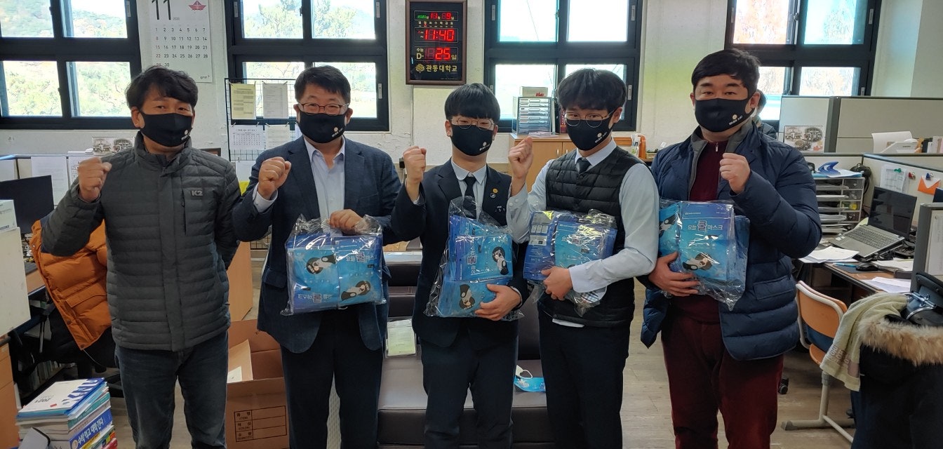 방역마스크를 아래와 같이 제작하여 오늘 모교를 방문해서 3학년 대표들에게 직접 전달하고 수능에서 좋은 성적을 올리라고 응원하였습니다.