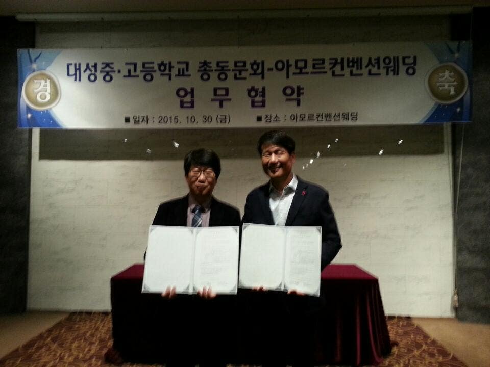 대성중.고총동문회와 아모르켄벤션 웨딩과의 서비스 협약식을 10월30일 오후5시에 아모르컨벤션에서 개최 하였습니다.