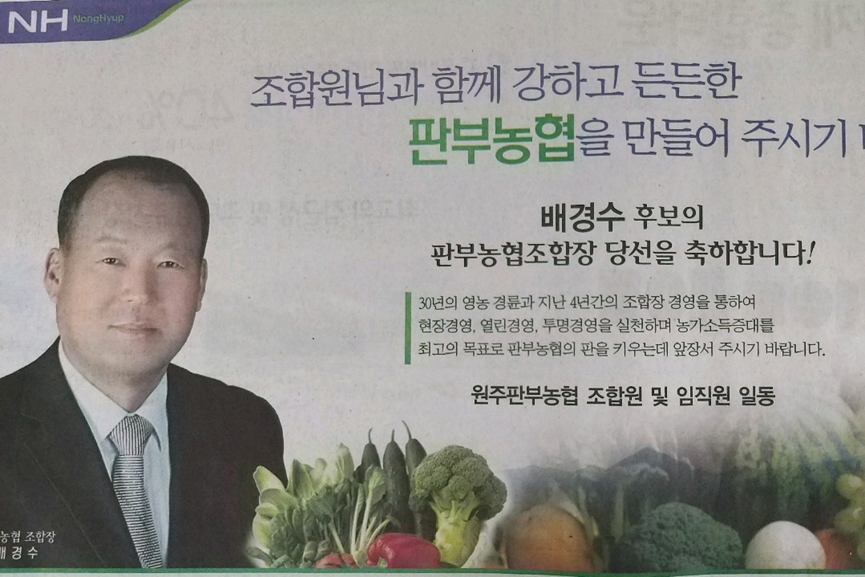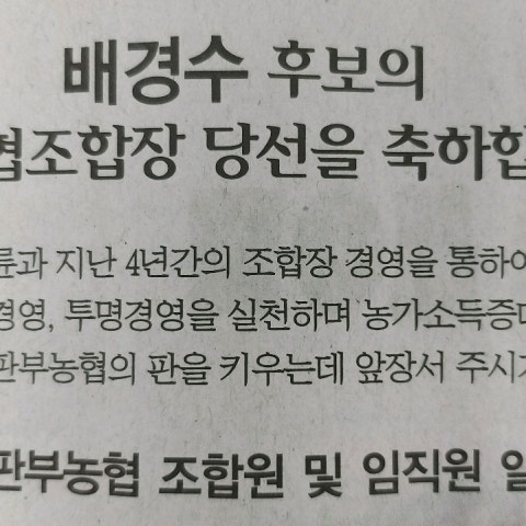 배경수 (21회)동문 원주판부농협 조합장 재선 당선 축하합니다~^^♡