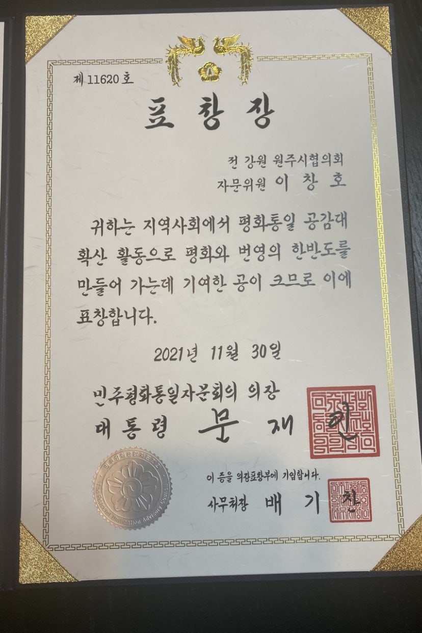 38회 이창호동문 민주평화통일자문회의 대통령상 표창