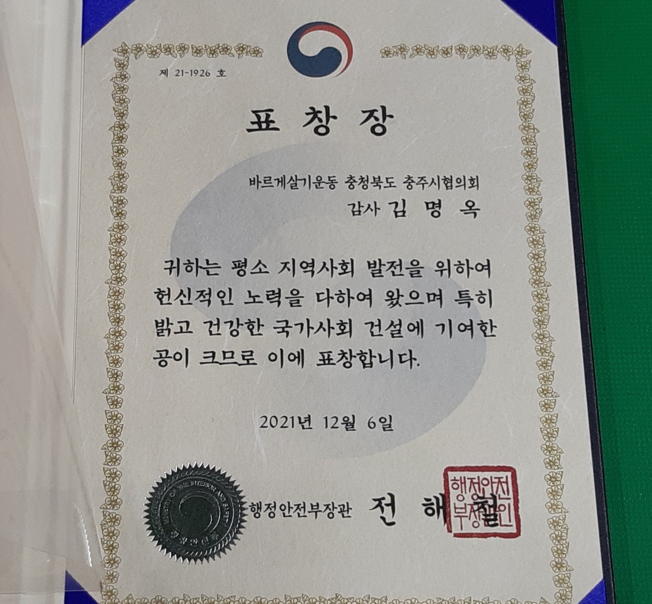 사랑하는 동문 선배님 후배님 얄미운 코로나가 일상생활을 많이 힘들게 하는군요.이렇게 힘든 일상생활에도 열심히 봉사정신으로 살고있는 15회김명옥 친구가 큰 상을 받았습니다. 선.후배님들 많은 박수를보내주세요. 감사하고 고맙습니다.추운날씨 건강하세요 행복하세요♡♡♡
